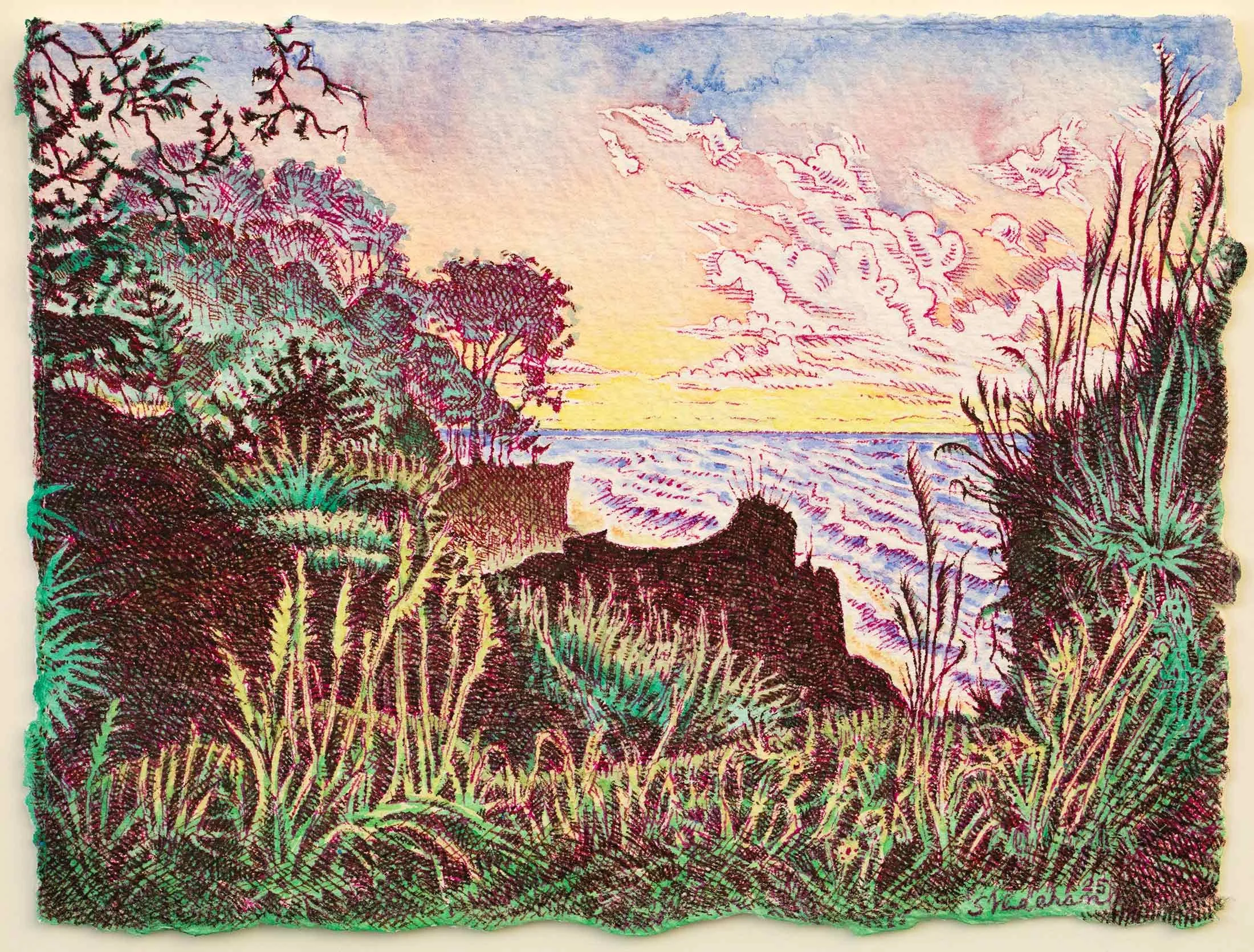 Seascape Park. 2025, Ink and watercolor on Arches Aquarelle paper. (6 x 8 in.)
